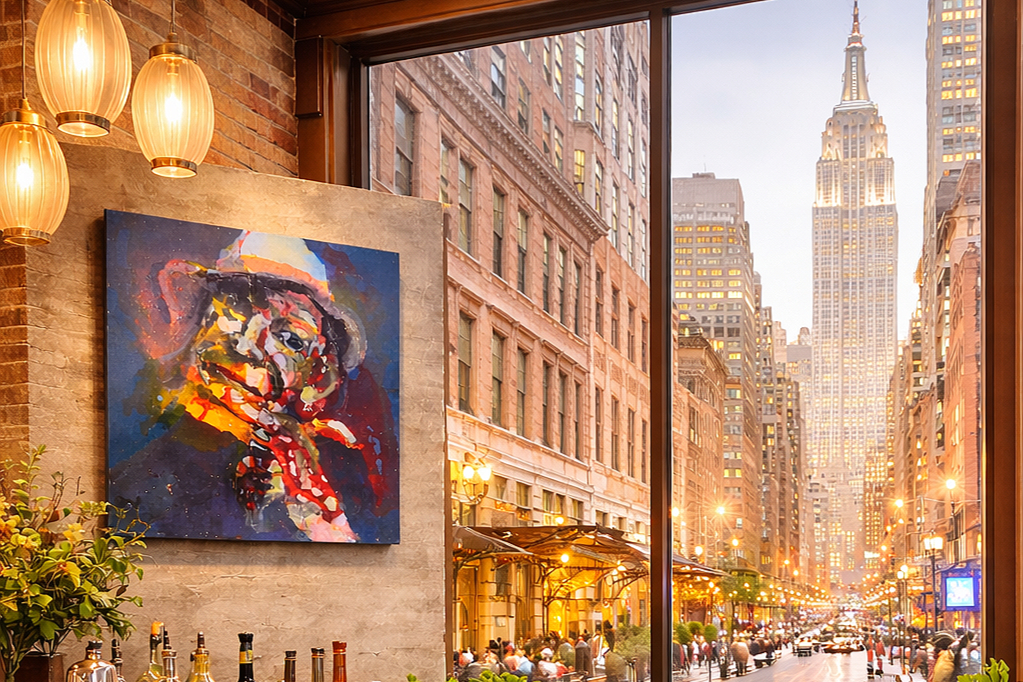 Farbe wird hier zum Träger von Atmosphäre. Leuchtende Gelb- und Rottöne durchziehen das Bild, werden von kühlen, dunklen Nuancen aufgefangen und in ein harmonisches Gleichgewicht gebracht. Die einzelnen Farbschichten überlagern sich, fließen ineinander, verdichten sich und öffnen sich wieder – wie musikalische Akkorde, die miteinander in Resonanz treten. Trotz der lebendigen, gestischen Malweise wirkt die Komposition geschlossen und stimmig.